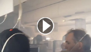بالفيديو.. حالة هلع داخل طائرة وانبعاث دخان فيها قبل هبوطها ..