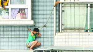 بالصورة.. طالب يجلس على حافة الطابق 11 هربا من واجبه ..