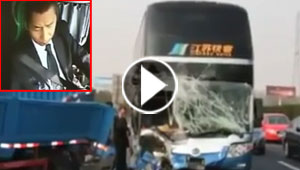 بالفيديو.. شاهد كيف انشغل سائق الباص بجواله فاصطدم بناقلة ..