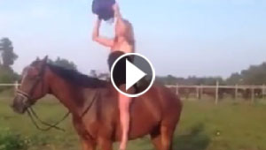 بالفيديو.. سكبت دلو الثلج على راسها اثناء امتطائها للحصان.. ..