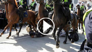 سنابك خيل الشرطة السويدية تلحق اصابات بمتظاهرين متنافسين