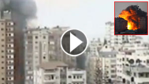 بالفيديو.. هكذا دمرت اليد الاجرامية الاسرائيلية برجا سكنيا ..