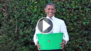 بالفيديو.. دلو الثلج ومائة الف دولار اداة اوباما المزيف لتحدي ..
