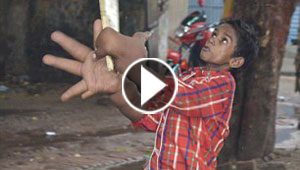 يدا طفل هندي تتضخمان بحجم عملاق.. كل يد منهما تزن ..