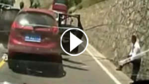 بالفيديو.. شاهد كيف نجت مرأة باعجوبة من حادث طرق خطير جدا