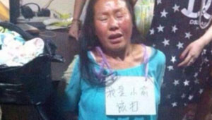 صاحب متجر يعاقب لصة بلافتة حول عنقها تعترف فيها بالسرقة