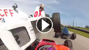 بالفيديو.. سيارة سباق تطير من فوق رأس مسابق منافس!