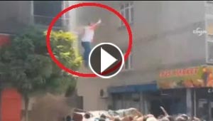 بالفيديو.. امرأة تركية حامل تقفز من شرفة بيتها بعد احتراق ..