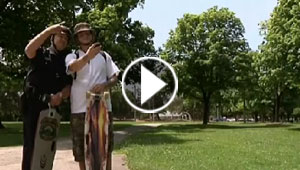 بالفيديو.. شرطي امريكي يقوم بدوريات على لوح التزحلق