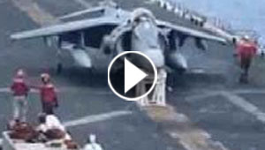 فيديو لا يصدق.. مقاتلة امريكية تهبط على كرسي ضخم!!