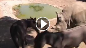 بالفيديو.. أنثى وحيد القرن تتواسى بالحمير بعد قتلها ..