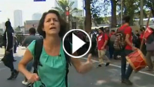 إصابات في اوساط الصحفيين واللاعبين في صدامات مع المحتجين ..