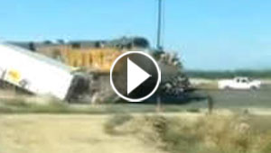 بالفيديو.. قطار بضائع يقطع شاحنة الى أشلاء