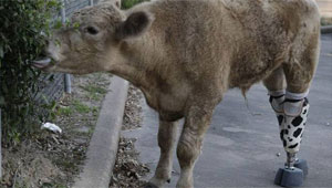 بالفيديو...قدمان صناعيتان تعينان عجلا محظوظا على ممارسة حياته ..