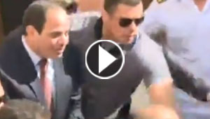 السيسي ينحني لالتقاط نظارة سقطت من رجل اثناء التصويت