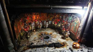 بالصور.. حريق بمغارة المهد بسبب شمعة والنجمة والايقونة ..