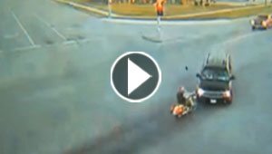 بالفيديو.. راكب دراجة نارية يصطدم بسيارة وينجو باعجوبة