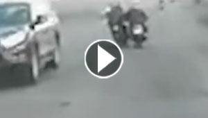بالفيديو.. هل دفع راكب الدراجة زميله عمدا للاصطدام بسيارة