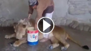 بالفيديو.. شاب يرضخ اسدا بالحنكة والحيلة !
