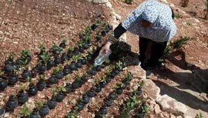 بالصور.. ام فلسطينية تزرع الزهور في القنابل التي قتلت ابنها ..