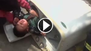 عملية معقدة لاخراج طفل صيني علق داخل الغسالة