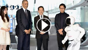بالفيديو.. الروبوت الياباني آسيمو يتحدى اوباما بكرة القدم ..