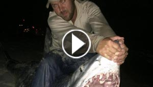امريكي يصطاد سمكة قرش بصنارة فقط!!