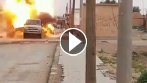 بالفيديو.. صاروخ النصرة ينقض على سيارة لداعش ويفجرها في ..