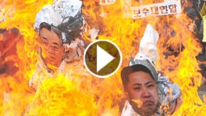 متظاهرون غاضبون في سيئول يحرقون صور زعيم كوريا الشمالية
