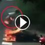 شاهدوا.. سائقة تنجو من تحت عجلات شاحنة والنار تشتعل فيها