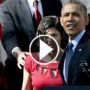 فتاة كادت تنهار فقطعت على اوباما خطابه