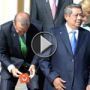 قمة الاحترام.. اردوغان ينحني لرفع العلم التركي الملصوق على ..