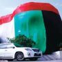 ليعبر عن فرحه في اليوم الوطني.. جعل علم الامارات غطاء ..