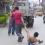 والد صيني يعري ابنه المراهق ويجرجره في الشارع!!
