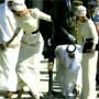 صورة لامير قطر وهو يضع الحذاء في قدم الشيخة موزة بعد ..