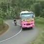 بالفيديو.. حادث طرق بين حافلة ودراجة نارية!