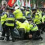 مناهضو الحرب يستقبلون توني بلير بالبيض والأحذية