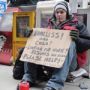 عاطل عن العمل يحمل لافتة: اريد وظيفة… قابلوني وانا مستعد..