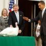 أوباما ويده فوق الديك الرومي: عفوت عنك.. فأنت حر