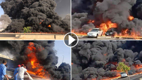 انفجار ماسورة خط بترول يتسبب في حريق هائل ومدمر في مصر