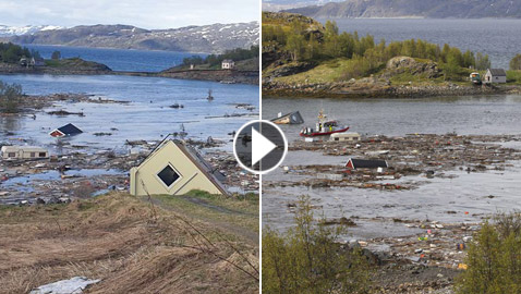 فيديو مرعب لابتلاع البحر قرية بكاملها بعد انهيار أرضي ..
