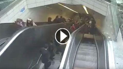 فيديو مروع: درج كهربائي جائع يبتلع شخصا سيء الحظ
