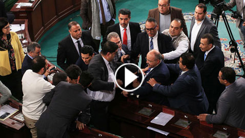 بالفيديو.. فوضى واشتباك بالأيدي في جلسة للبرلمان التونسي