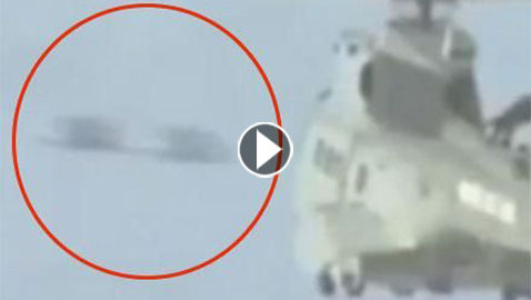 مقطع فيديو لجسمين غريبين، يتبعان طائرة مروحية