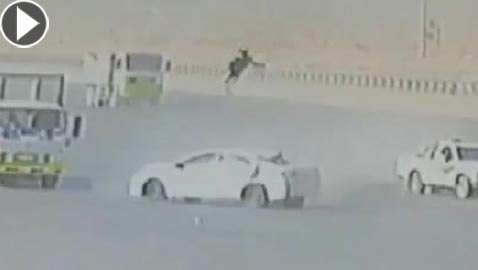 فيديو مروع لشخص يطير في الهواء صدمته سيارة