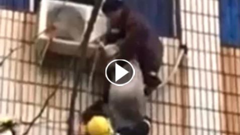 رجل مشلول يتسلق مبنى محترق لينقذ امرأة حامل.. فيديو
