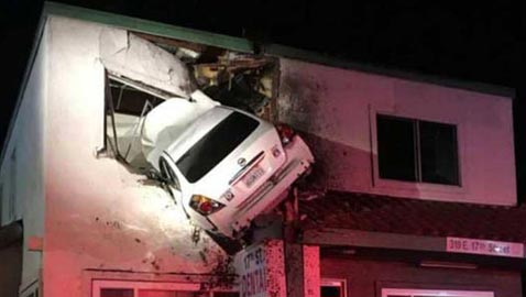حادث سيارة غريب يحطم قواعد الطبيعة.. صور
