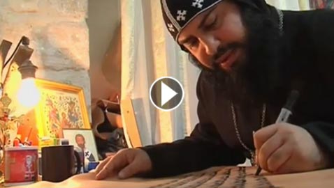 بالفيديو.. الراهب بولس يكتب باللغة الآرامية القديمة