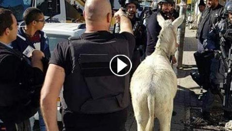 قوات الجيش الاسرائيلي تعتقل حماراً في القدس.. فيديو وصور