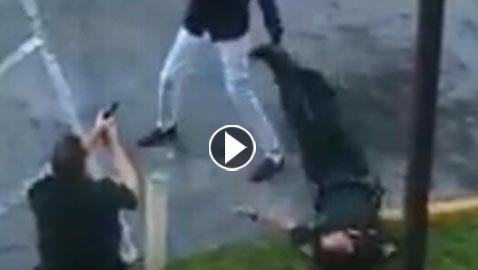 فيديو صادم.. لص يعتدي على شرطي ويطرحه أرضاً